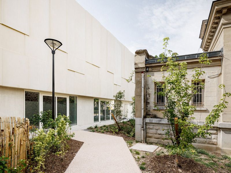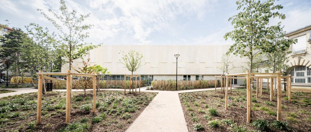 Le gymnase Guy Moquet vétuste ne répond pas aux besoins des usages. La mission consiste en la démolition-reconstruction du bâtiment de manière à le rendre plus fonctionnel et adaptés à la pratique sportive et associative locale. Le Gymnase est situé dans le centre-ville, au cœur du vaste parc de Stalingrad et est ceinturé par des espaces paysagers : le square des pompiers et le terrain de boules. Les abords du gymnase sont composés d’un parvis convivial et sécurisé et d’une ceinture végétalisée qui joue un rôle important dans la gestion des eaux pluviales et un rôle de liaison avec les espaces végétalisés attenants. Ainsi, le gymnase est ses abords deviennent une nouvelle pierre angulaire pour le parc Stalingrad.