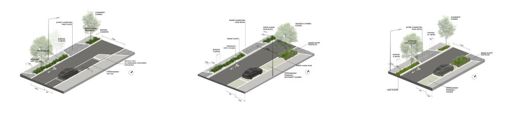 Le projet d’aménagement vise à végétaliser et désimperméabiliser les rues tout en offrant un cadre de vie de qualité aux usagers, avec :