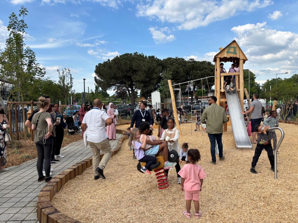 Le projet se construit en deux unités distinctes qui fonctionnent ensemble, la frange végétalisée et l’aire de jeux. La frange vient former un écrin protecteur qui met à distance la route et le parking tout en apportant de l’ombre et une ambiance végétale apaisante dans un environnement urbain très minéral. Au cœur du projet, l’aire de jeux est l’unité dynamique, conçue avec une approche biomimétique. Elle intègre harmonieusement des éléments organiques et naturels pour offrir une expérience ludique immersive. Le choix du mulch comme revêtement de sol assure une surface sûre et amortissante, tout en favorisant la perméabilité du sol et la préservation de la biodiversité locale. Les structures de jeux, réalisées en bois brut, s’intègrent parfaitement dans le paysage environnant tout en offrant une esthétique rustique et durable.